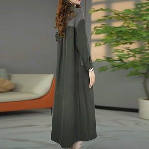 高级感精纺磨毛轻奢高档连衣裙大码遮肉遮胯系带过膝长裙子秋季新