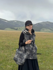 秋冬季新款欧洲站时尚休闲轻薄立领织带驼绒女款马甲309YH