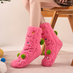 超厚羊羔绒袜子女秋冬季可爱中筒睡眠袜加绒保暖居家地板袜子