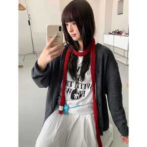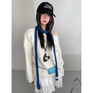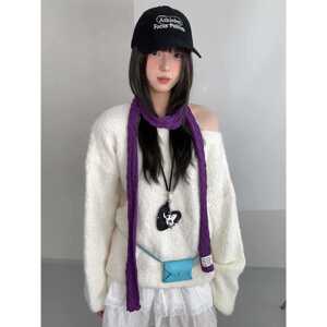 韩版高级感细窄长条针织围巾女小众防寒保暖护颈围脖复古时髦配饰