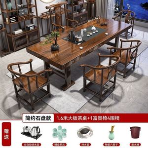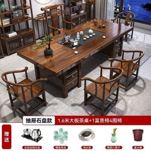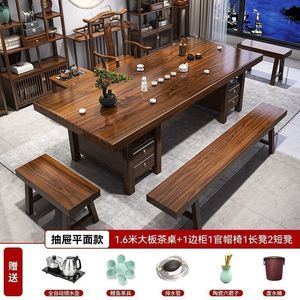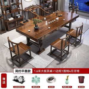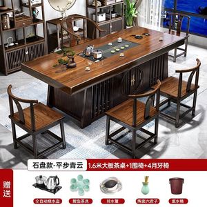 高端办公家用茶台一体实木大板泡茶茶桌一桌五椅现代一整套茶几