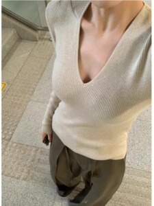 纯色v领针织打底衫女秋冬新款内搭毛衣纯欲修身显瘦百搭长袖上衣