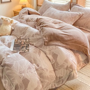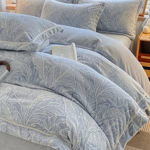 高级感A类母婴级加厚立体雕花牛奶绒床上四件套冬季珊瑚绒被套单4