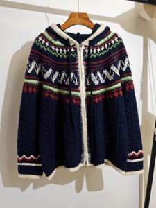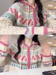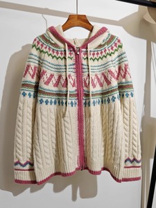 粉色连帽拉链费尔岛提花毛衣女装2025新款秋季复古艺术生穿搭上衣