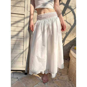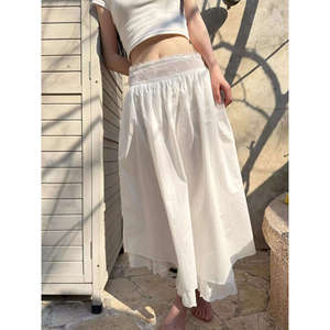 实价现货白色设计感蕾丝边拼接半身裙女2025夏季独特漂亮伞裙长裙