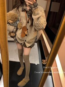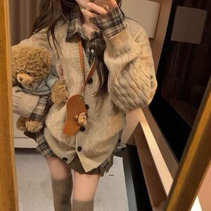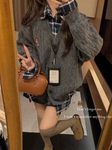 濮院毛衫厂 韩版宽松软糯v领针织开衫上衣慵懒毛衣学院百搭外套女