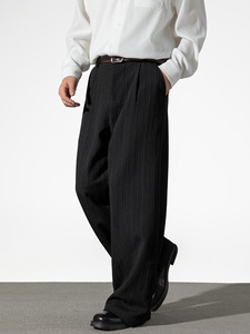 复古轻奢条纹肌理高级垂感西裤男秋冬款休闲裤宽松直筒裤潮牌长裤