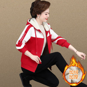 中年妈妈冬装羊羔绒外套中老年运动套装女秋冬加绒加厚卫衣两件套