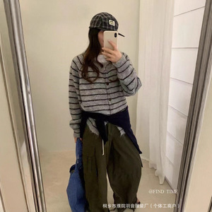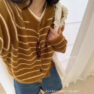 2025秋冬新款简约复古百搭针织开衫羊毛混纺韩国东大门毛衣外套女