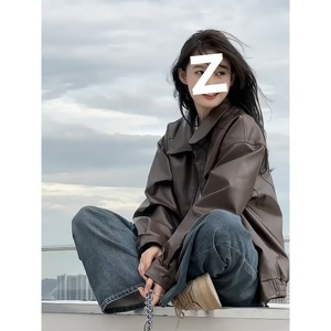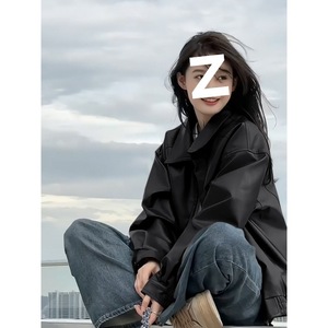 美式复古皮衣夹克外套女春秋季黑色甜酷风机车PU皮宽松修身长袖上