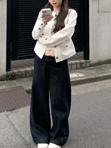 中古香香 白色明线撞色小香牛仔短外套女秋夹克