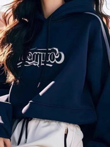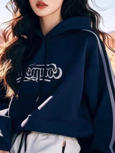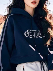 今年流行爆款早秋季小个子设计感藏蓝色连帽薄款卫衣女2025年新款