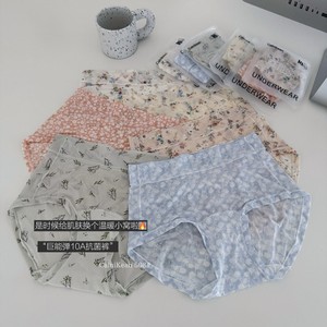 508#巨能弹10A抗菌裤丝滑轻薄无痕高弹田园碎花透气三角内裤6条装