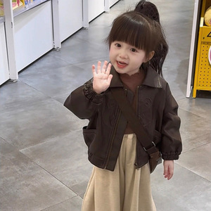 女童外套春秋款2025新款春装儿童洋气皮衣机车宝宝皮夹克时髦上衣