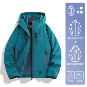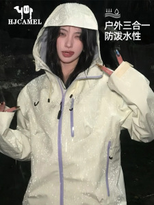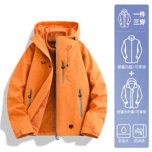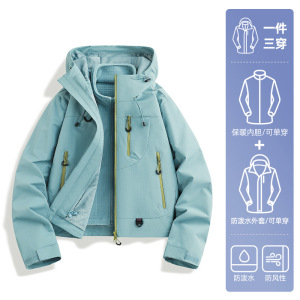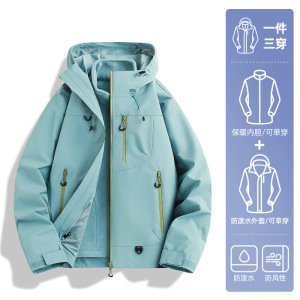骆陀冲锋衣男女款山系新款春秋户外三合一防风防水登山服女士外套