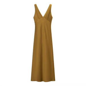 外贸2025秋季新款女装设计感小众百搭修身显瘦休闲丝缎质感连衣裙