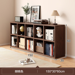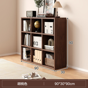 实木书架书桌组合落地胡桃木色书柜自由组合格子储物柜客厅置物柜