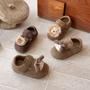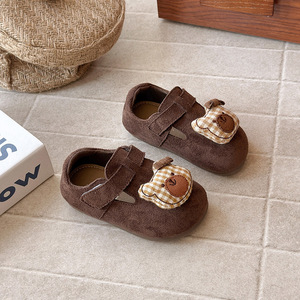 女童复古英伦风绒面皮鞋2025春秋新款软底小童勃肯鞋男童卡通单鞋