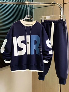 男童假两件卫衣套装春秋2025新款帅气儿童休闲中大童运动男孩衣服