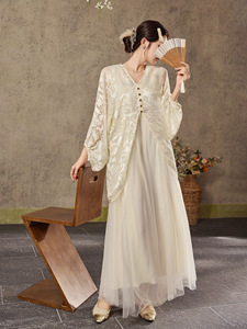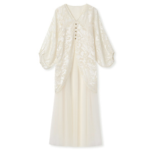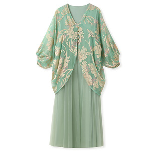 时尚国风新中式高端烧花工艺长裙女新款织造染拼接印花裙子 N8047