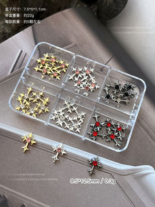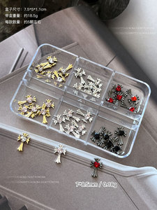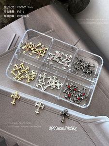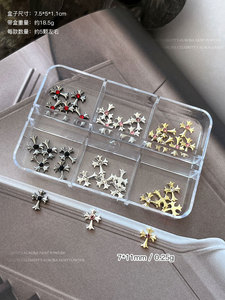 6格十字架美甲合金饰品辣妹个性朋克风镶钻克罗心指甲钻装饰批发
