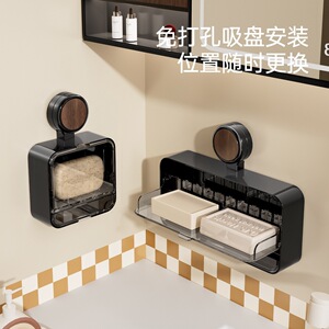 西图子新款吸盘肥皂盒化妆室家用免打孔壁挂式浴室沥水香皂收纳盒