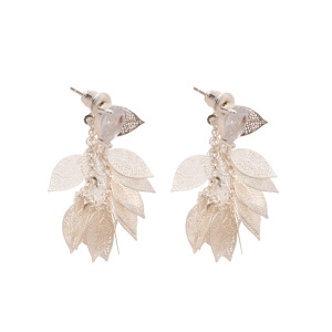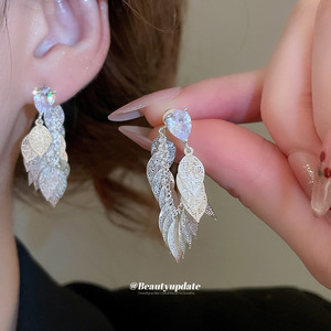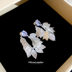 银针锆石镂空树叶流苏耳钉轻奢冷淡风个性耳环小众高级感耳坠耳饰