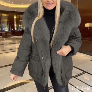 欧美亚马逊秋冬新款跨境欧美时尚外贸女装气质优雅连帽中长款棉服