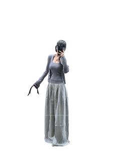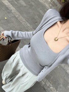 韩系早秋新款慵懒显瘦修身套装灰色吊带外搭针织开衫两件套上衣女