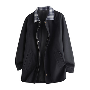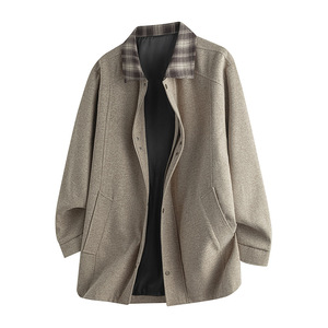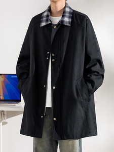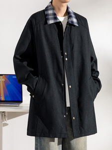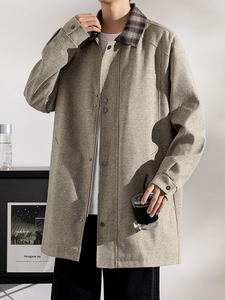 春秋男士中长款翻领夹克胖子韩潮加肥加大轻熟商务休闲风衣外套男