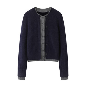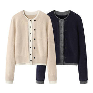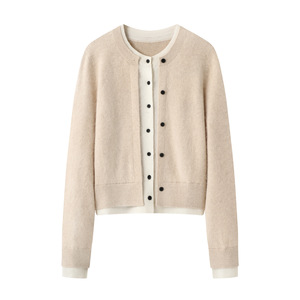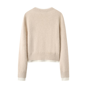现货2025秋新品简约风假两件针织开衫上衣MBE3CAR001