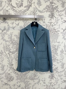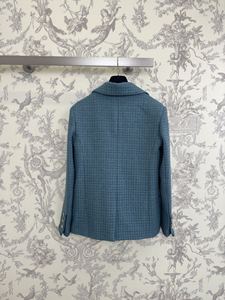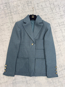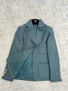 深圳南油24秋冬款复古气质金属双排扣翻领人字纹收腰毛呢西装外套