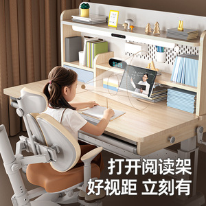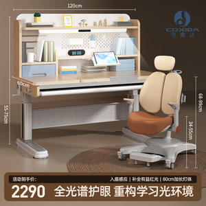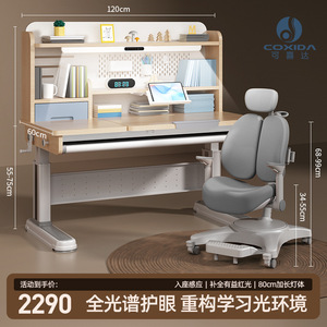 新品德国Coxida灯桌一体实木儿童学习桌家用中小学生书桌写字桌椅