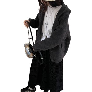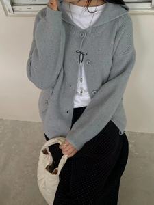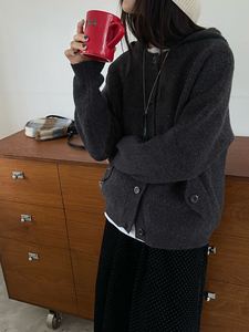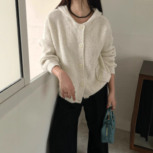 韩国东大门时尚休闲针织开衫上衣2025秋冬连帽坑条宽松加厚毛衣女