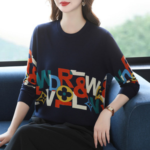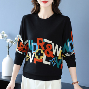 2025新款秋冬时尚字母印花毛衣女宽松长袖慵懒风打底针织衫洋气上