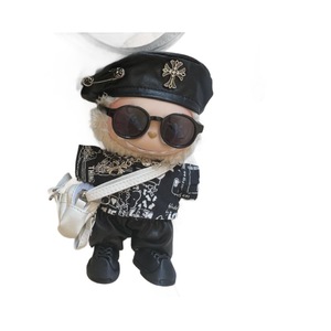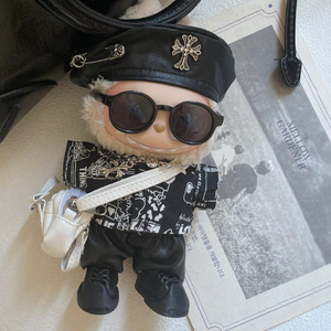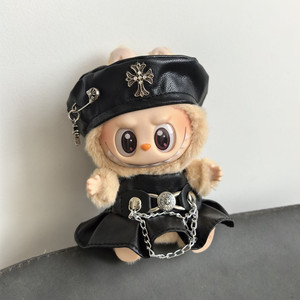 一二三代拉布布娃衣17cm痞帅皮裤套装labubu衣服克罗心贝雷帽批发