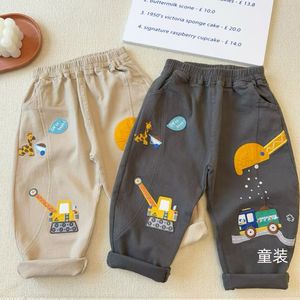 日系童装~秋季新款儿童卡通挖掘机长裤可爱梭织裤男宝宝休闲裤子