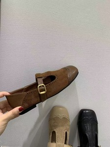 2025年秋季复古棕色方头玛丽珍鞋芭蕾舞鞋仙女风平底女鞋浅口单鞋