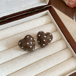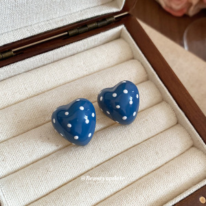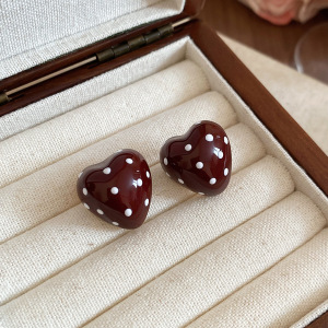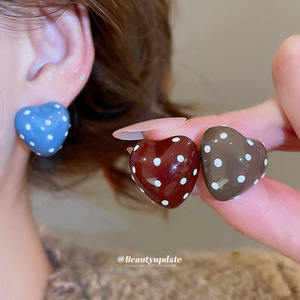 银针滴油波点爱心耳钉秋冬通勤百搭甜美耳环小众高级感复古耳饰女
