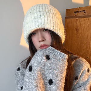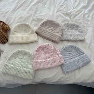 *缤纷乐园*彩虹糖豆冬季新潮保暖含羊毛针织帽护耳显脸小毛线帽子