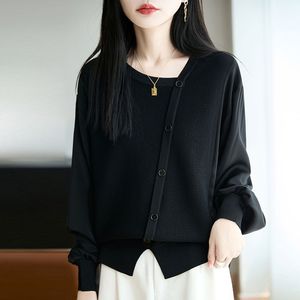 大码女装早秋冰丝针织衫上衣春装长袖漂亮小衫宽松薄款打底
