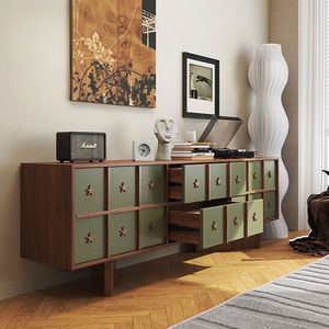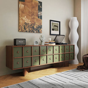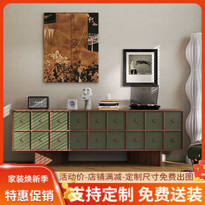 中古风小户型电视柜复古落地电视机柜靠墙一体储物家用收纳柜边柜