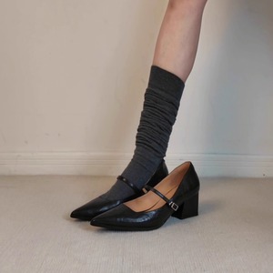羊皮版~2025新款优雅复古浅口软底一字扣带粗跟尖头气质玛丽珍鞋