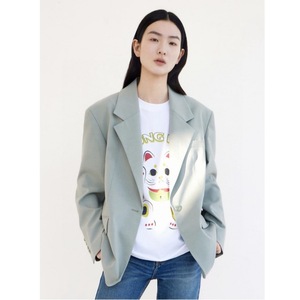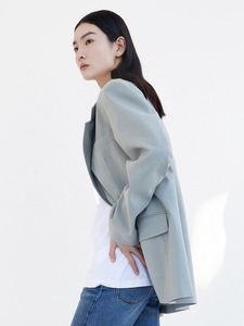25SS YB/1折起 ED家羊毛混纺廓形女绅士西装甘草绿色修身羊毛外套