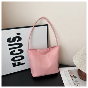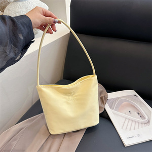 新款韩国手提包2025新款时尚百搭简约轻便上班通勤刺绣腋肩水桶包