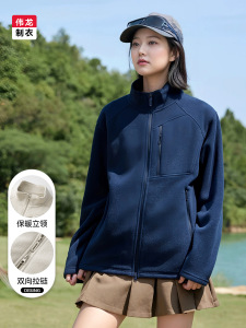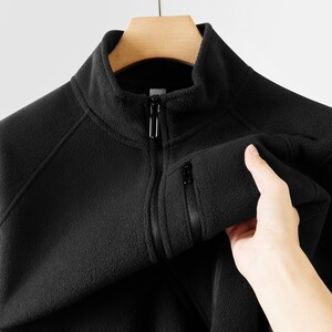 双面摇粒绒立领夹克男340G防风抓绒上衣秋冬季新款抗静电开衫外套
