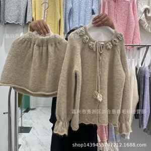 立体花朵上衣+短裙2025韩系早秋一整套ootd穿搭独特漂亮两件套