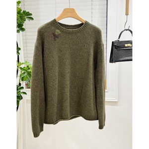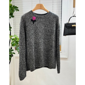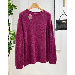 多多欧洲站秋欧货软糯山羊毛针织衫圆领立体花朵桑蚕丝紫标毛衣