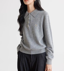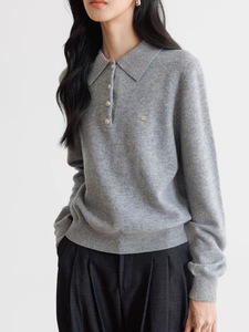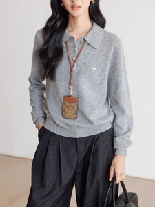 秋季羊毛针织衫女2025新款长袖polo领宽松气质学院风内搭套头毛衣