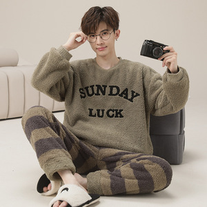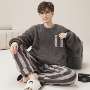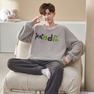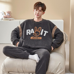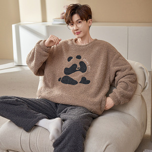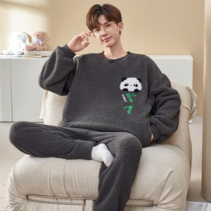 半边绒睡衣男士冬季卡通珊瑚绒加绒男生冬款青年可外穿家居服套装
